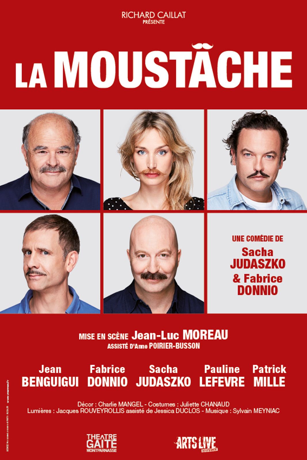 « La moustache » est tirée du sketch de Sacha Judaszko « c’est la panne d’électricité » qui lui avait valu dans l’émission de Laurent Ruquier « on n’demande qu’à en rire » quatre « vingt » du jury dont ceux de Jean Benguigui et Jean-Luc Moreau : aujourd’hui l’un joue la comédie avec lui et l’autre le met en scène. Comme disait Jean-Luc Moreau « ton sketch est une petite pièce et j’aurais aimé en voir plus » ; eh bien aujourd’hui c’est chose faite puisque Sacha Judaszko a écrit cette pièce en collaboration avec Fabrice Donnio qui est également passé par l’émission "on n’demande qu’à en rire". Cette idée de petite pièce émise par Jean-Luc Moreau a germé dans la tête de Sacha Judaszko et il en a tiré une pièce qui ma foi fait beaucoup rire le public, tout en gardant l’idée du concierge et de la chute du sketch.