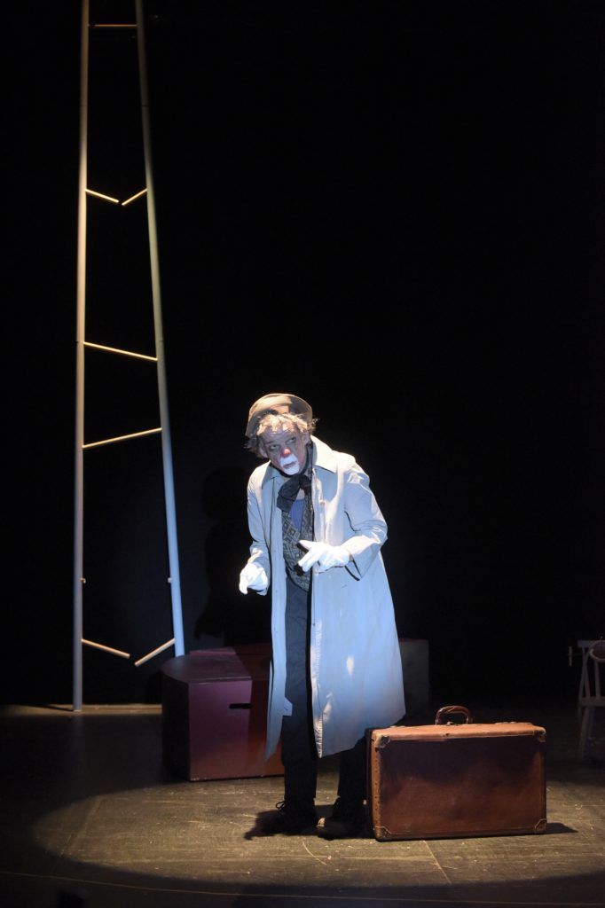 Entre l’ombre et la lumière, avec un élément de costume, un accessoire, un élément de décor, un regard, un maquillage, Denis Lavant, notre clown d’une représentation évolue sur scène à la recherche de son identité. Son phrasé est rythmé par les notes de musique sur des instruments qu’il maîtrise parfaitement et nous délivre des nuances et de multiples facettes de son talent : il est tout simplement touchant.
