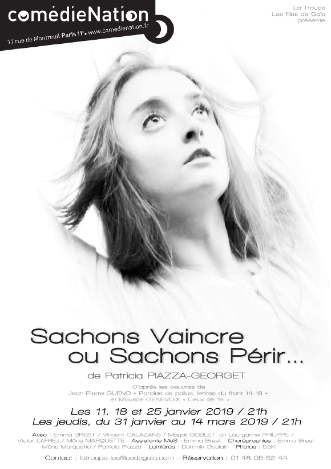 « Sachons Vaincre ou Sachons Périr…» de Patricia Piazza-Georget au théâtre de la Comédie Nation, une jeunesse porteuse d’espoir sacrifiée au nom de la bêtise humaine qui doit survivre au nom de l’amour et vaincre au nom de la patrie…
