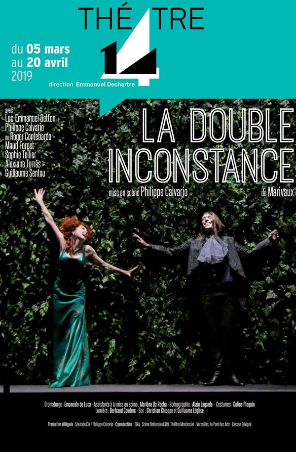 « La double inconstance » au théâtre 14, mardi, vendredi et samedi à 20h30, mercredi et jeudi à 19h00 jusqu’au 20 avril.