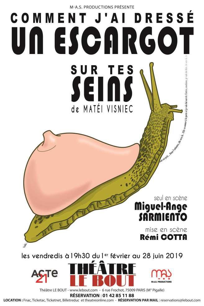 "Comment j'ai dressé un escargot sur tes seins" au théâtre Le Bout, le vendredi à 19h30, jusqu'au 28 juin.