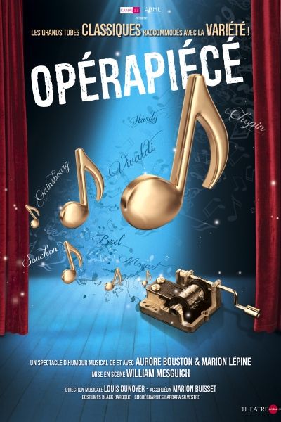 Opérapiécé est construit comme un patchwork, où les morceaux de musique classique sont raccommodés avec des chansons de variété. Les grands « tubes » des deux parties s’assemblent allègrement pour donner un spectacle complètement loufoque.