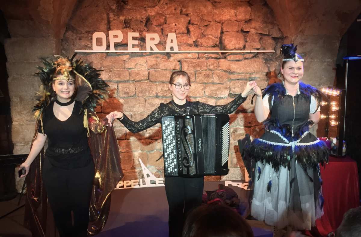 Vous avez à peine le temps de reconnaître le thème musical qu’elles sont déjà passées à la mesure suivante : dans un tourbillon maîtrisé à la perfection ce ne sont pas moins d’une trentaine de compositeurs classiques qui accompagnent une cinquantaine de chansons de variété française pour un final à l’américaine avec le succès mondial « The show must go on ». Le tout arrangé musicalement par Louis Dunoyer, une très belle idée que cette transcription pour un accordéon magique.