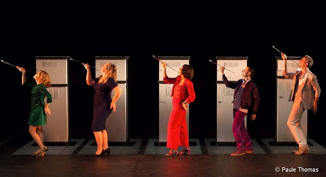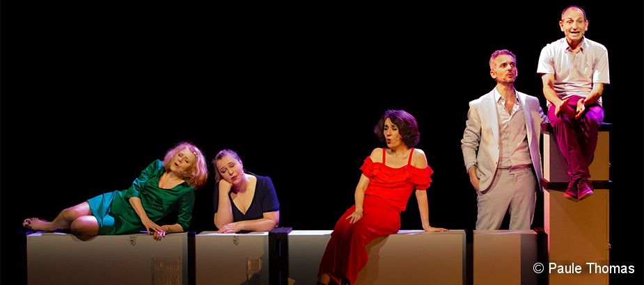 Cinq artistes aux voix, aux jeux, qui nous séduisent par tant de charisme et de virtuosité. Un groupe vocal composé de deux sopranos, Pascale Costes et Karine Sérafin, d’un ténor Patrick Laviosa, d’un baryton-basse Fabian Ballarin et d’une alto Sandrine Montcoudiol que j’ai plaisir à retrouver après l’avoir applaudie dans « Violette Fugasse » et récemment dans « L’anatomie de la joie ».