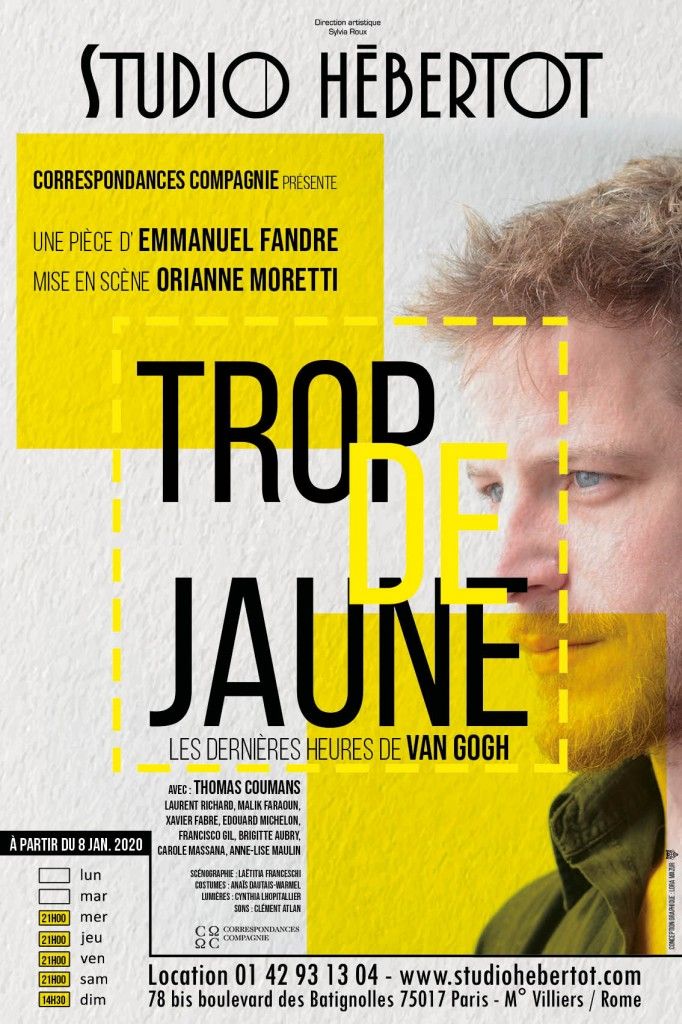 « Trop de jaune » au Studio Hébertot, du mercredi au samedi à 21h et matinée le dimanche à 14h30, jusqu'au 16 février.