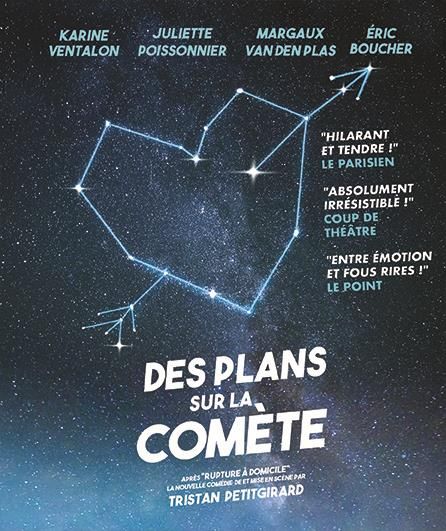 « Des plans sur la comète » une pièce de et mise en scène par Tristan Petitgirard au théâtre des Gémeaux est une comédie qui vous fait voyager dans les étoiles avec comme carburant les rires ponctués par la tendresse, ce qui provoque quelques soubresauts.