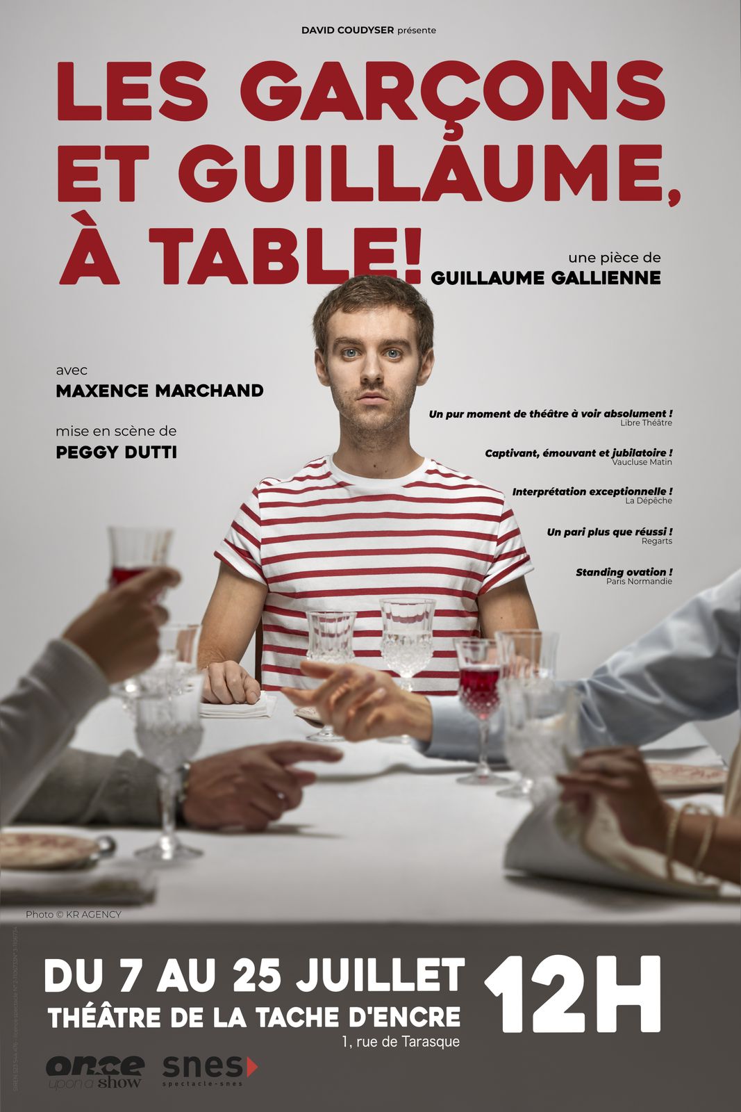 « Les garçons et Guillaume, à table ! » d’après le seul en scène de Guillaume Gallienne avec Maxence Marchand mis en scène par Peggy Dutti au théâtre de la Tache d’encre.