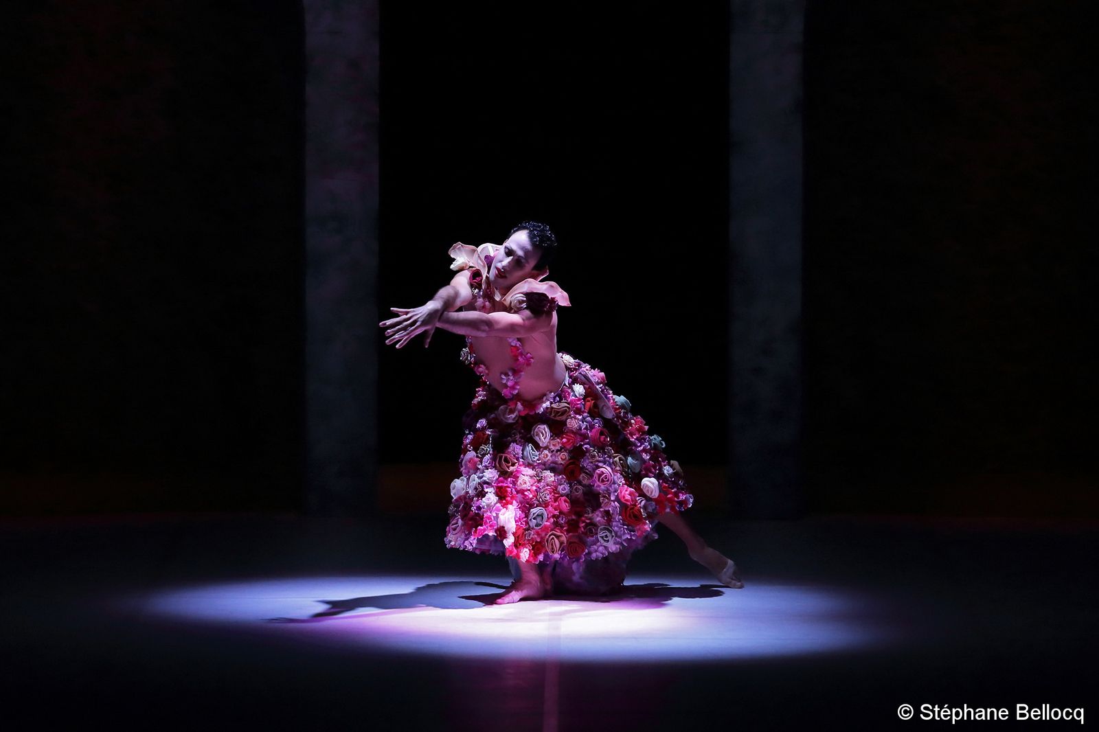 Son costume en forme de rosier, aux couleurs ensoleillées, aux épines venimeuses qui remplacent le fameux fuseau du rouet et qui formuleront sa perte, donne tout son éclat, à la vitalité de son expression, à ses pas bondissants.