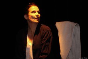 Dans une mise en scène de Jean Pennec qui se concentre sur l’essentiel, en plaçant Marie Guyonnet sur un plateau quasiment nu, imaginé par Véronique Belmont, laissant le spectateur créer son univers au travers d’une chaise où reposent un manteau de couleur claire ainsi qu’une paire de souliers assortis, complété par un lampadaire qui ressemble à une servante chapeautée, il laisse l’interprète correspondre avec le public qui devient son confident, où chacun d’entre nous sera le jeune homme, à la moralité douteuse, dont elle tombe amoureuse : un coup de foudre. Une partie de ping-pong commence…à nous de renvoyer la balle pour que vive cette histoire.
