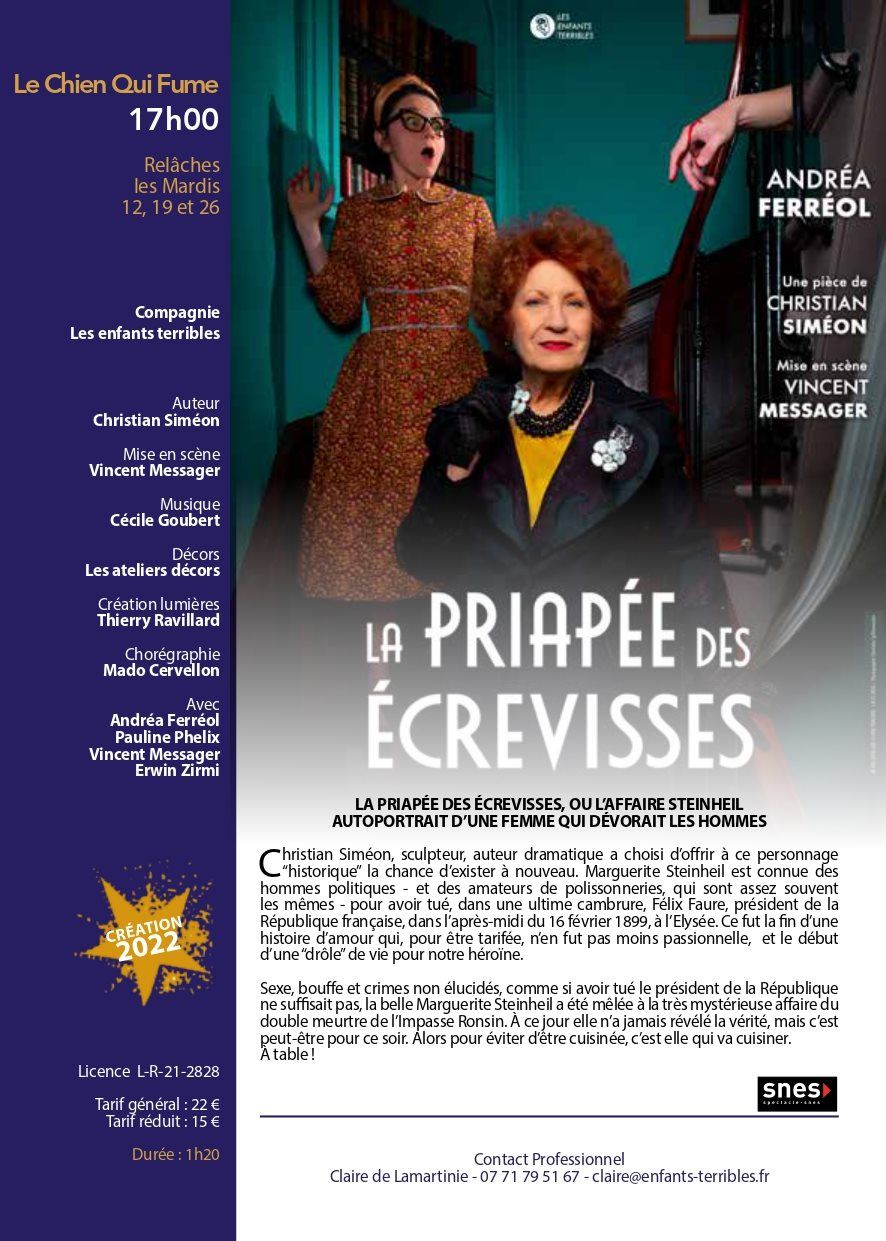 « La priapée des écrevisses » de Christian Siméon dans une mise en scène de Vincent Messager au théâtre Le chien qui fume est une leçon de théâtre sous couvert d’une recette de cuisine.