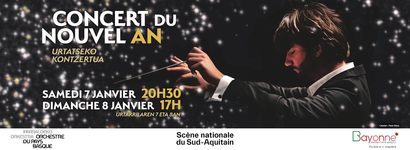 « Concert du nouvel an » à la salle Lauga, le 08 janvier 2023, organisé par la Scène nationale du Sud-Aquitain. Prochains rendez-vous avec l’Orchestre du pas basque : www.ospb.eus il y a forcément un concert près de chez vous !