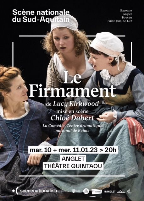 « Le firmament » de Lucy Kirkwood dans une mise en scène de Chloé Dabert sur la scène du théâtre Quintaou d’Anglet, dans une programmation de la Scène nationale du Sud-Aquitain en coproduction avec la Comédie - Centre dramatique national de Reims, ou la chronique annoncée de la vie de ces femmes ordinaires du XVIIIème siècle, aux portes du pouvoir, qui résonne encore de nos jours…