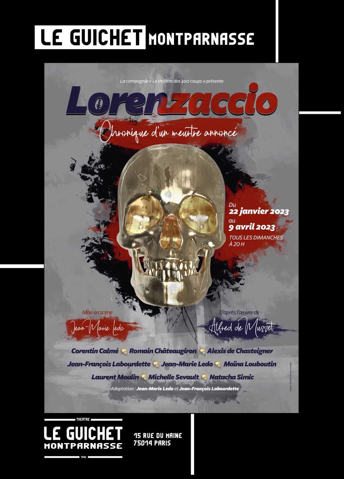 « Lorenzaccio » d’après l’œuvre d’Alfred de Musset dans une mise en scène de Jean-Marie Ledo sur la scène du théâtre Le guichet Montparnasse est une chronique d’une mort où la passion s’enlace dans le romantisme, inspirée par un voyage à Venise, à Florence, avec sa maîtresse George Sand.