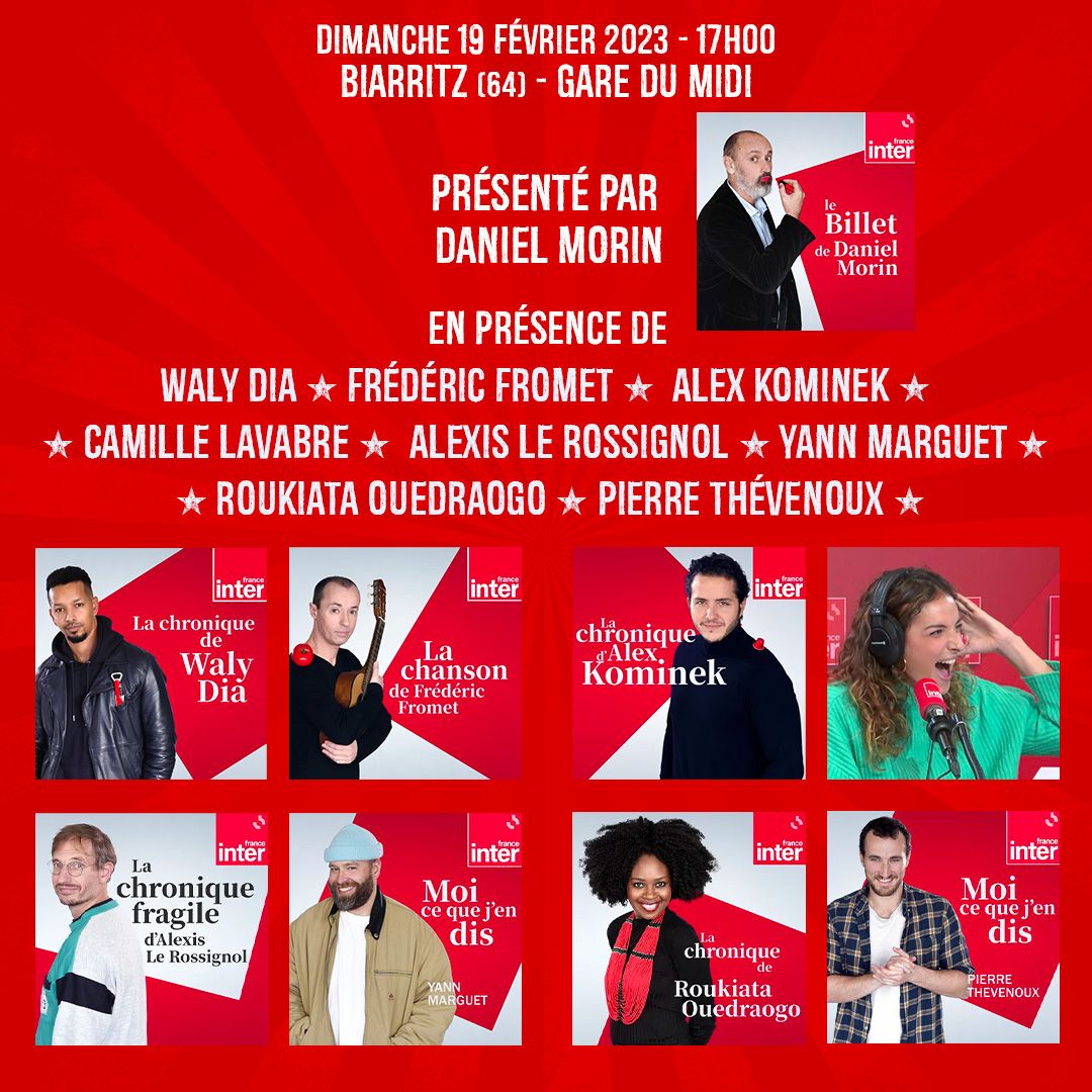 « Les humoristes de France Inter » sur la scène de La gare du midi à Biarritz, une Houlala Production à l’initiative d’Entractes Organisations. le 19 février 2023 Prochaines représentations : le 05 mars à Nantes, le 26 mars à Caluire et Cuire, le 18 juin à Caen