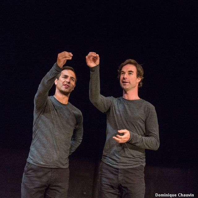 Rassurez-vous, ce n’est pas un conte tragique auquel on assiste, mais à un tableau haut en couleurs servi par deux comédiens qui maîtrisent sur le bout des doigts leur art ! Deux comédiens complices que j’avais très appréciés dans Dans la peau de Cyrano (cliquez) et La valse d’Icare (cliquez) pour Nicolas Devort et La vie trépidante de Brigitte Bataille (cliquez) Julien Cigana. Deux comédiens qui en une fraction de seconde, par un geste, une attitude, une intonation, changent de personnage sous nos yeux captivés par tant de vélocité.